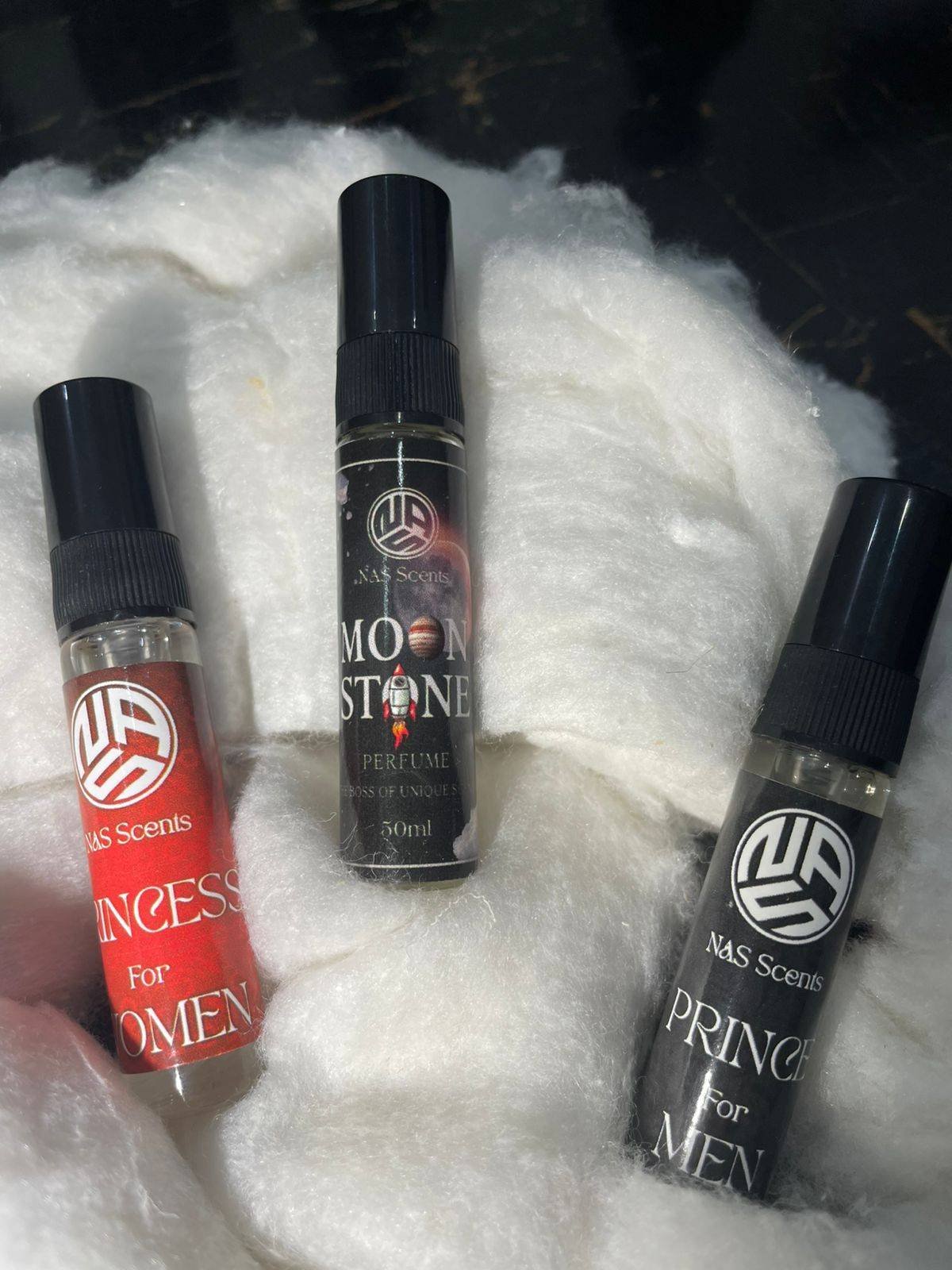 - NASSCENTS 3 PERFUME TESTER PACK (PRINCE, PRINCESS & MOON STONE) 5ML